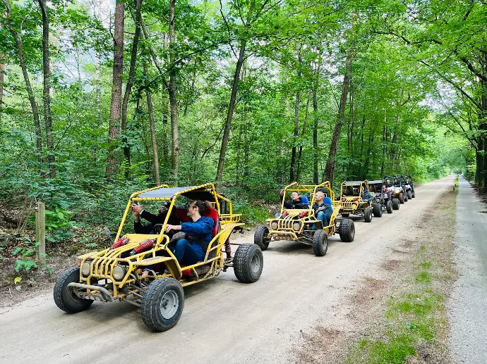 Stap samen in een buggy om een romantisch uitje te beleven. Geniet van elkaar en van de prachtige omgeving.
